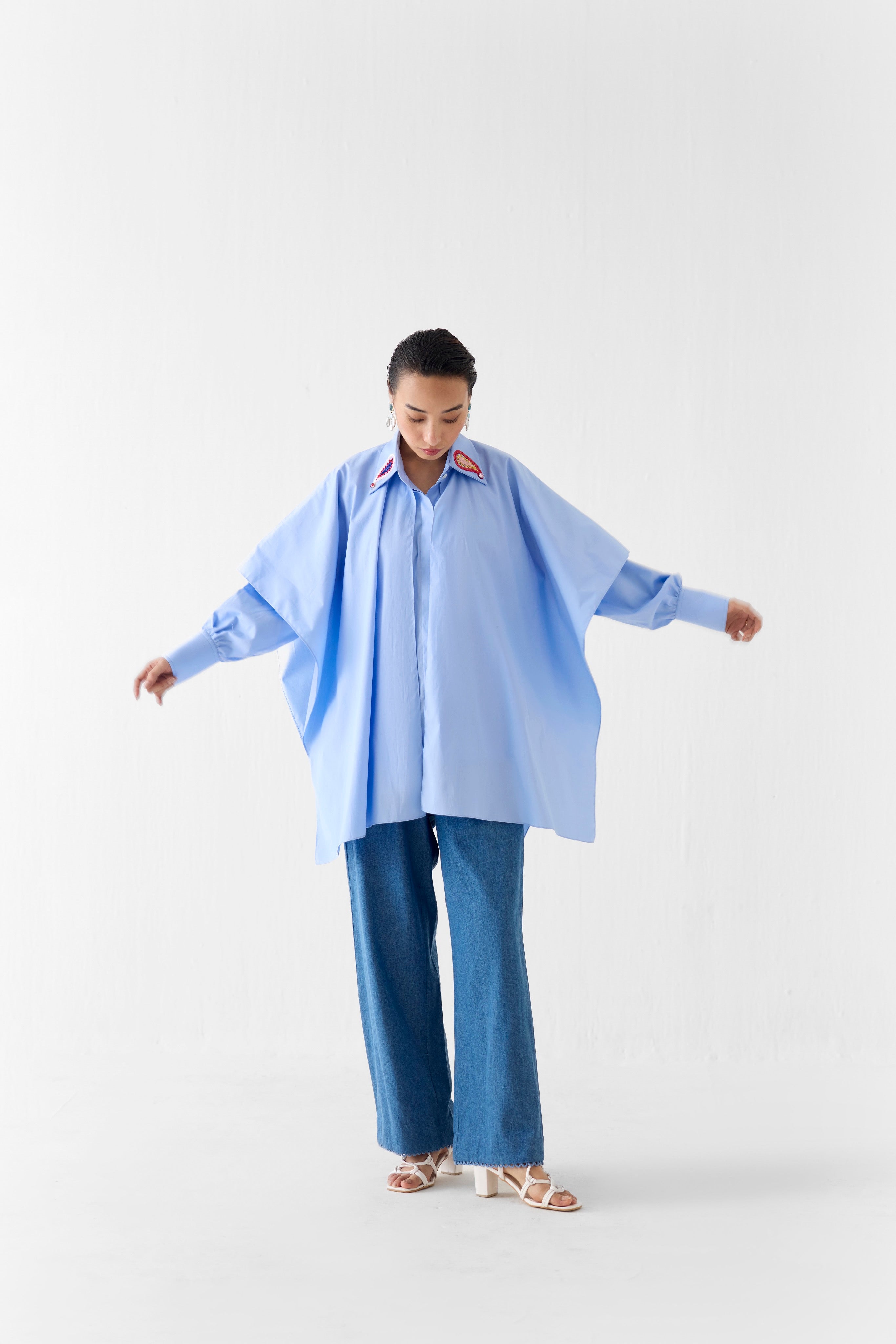 Named after the iconic jharokha, the architectural window that frames light and quiet observation, the collection invites a view into Jaipur reimagined. Through this window, contrasts unfold — exuberant florals against muted sandstone, intricate craft softened by expansive skies.