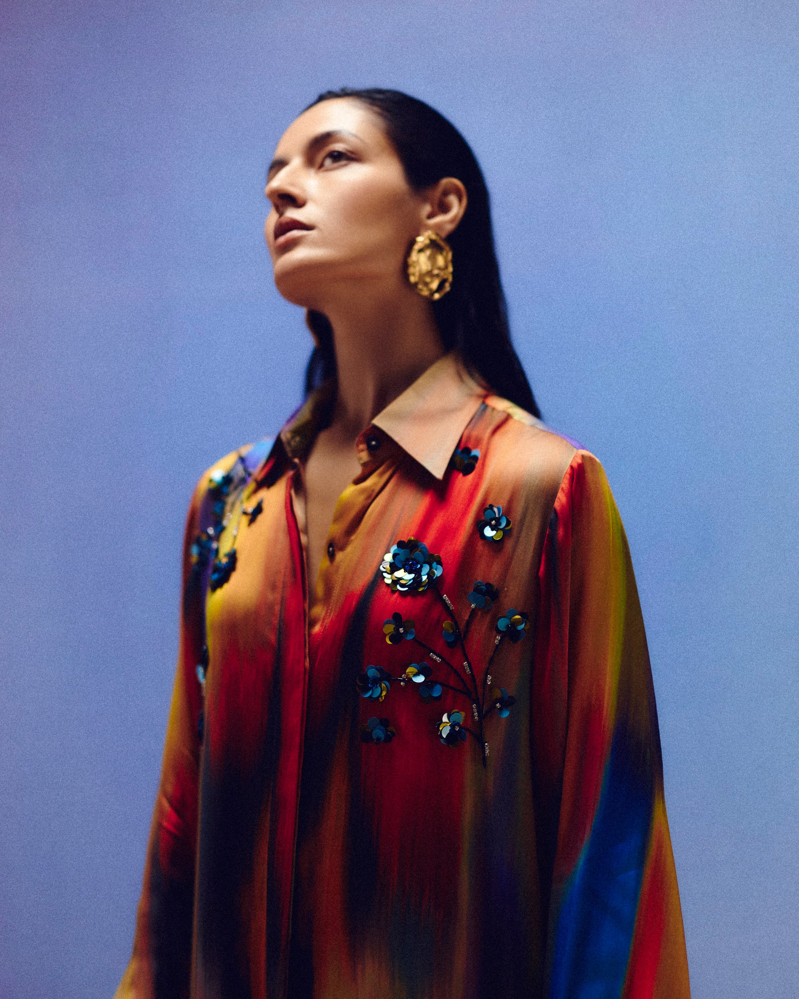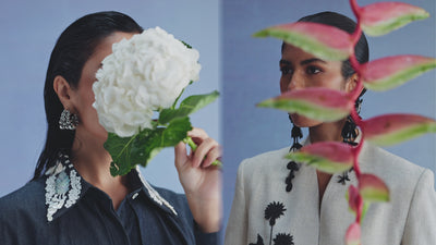 Soft elements of embroidery like organza, beads and sequins are used to replicate the delicate structure of a flower. The silhouettes are sharp mixed with fluidity. Creating a fine line between simplicity and luxury, each piece is created to standout on its own, each piece making the wearer feel a different emotion. A small capsule collection, it's a celebration of uniqueness and oddness in our true Studio RIGU style.
