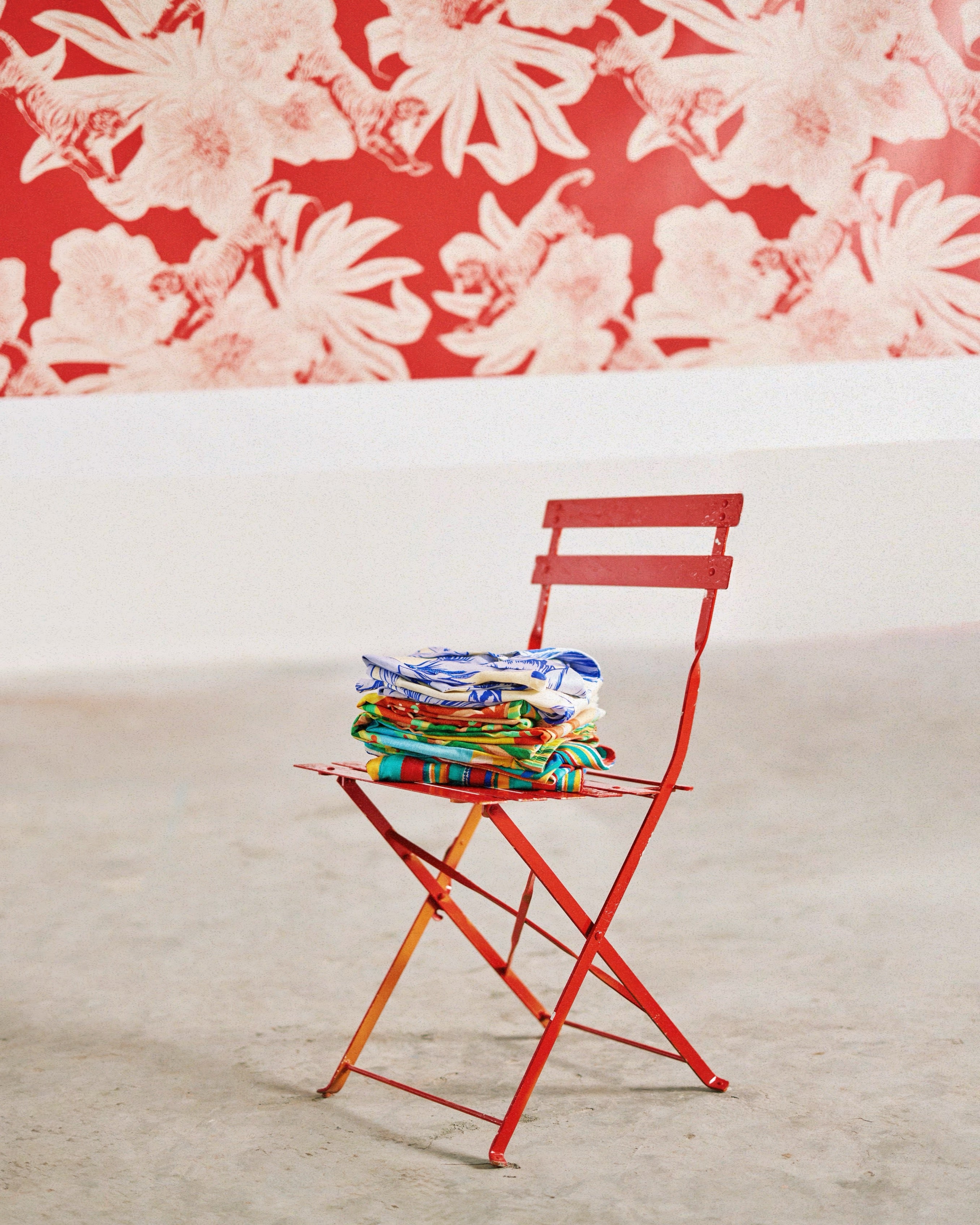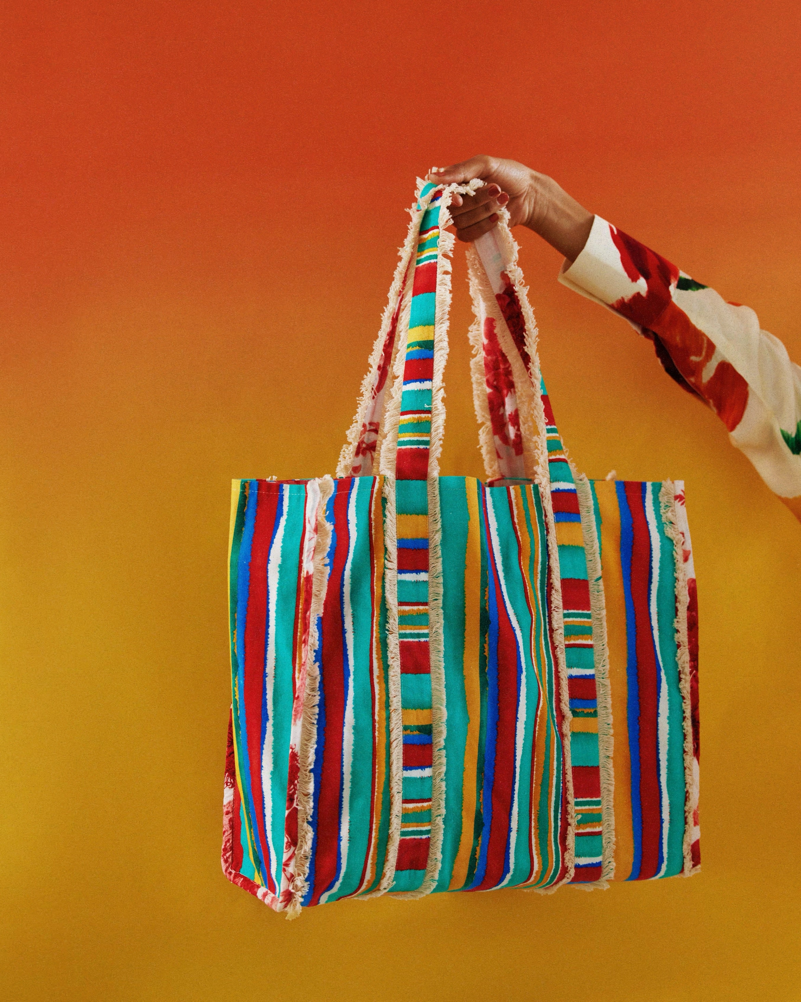 Palates of beige, cream and black overtake the pops of colours seen throughout the collection. Hand-drawn motifs are incorporated into a collection of sculptural silhouettes, balancing volume with relaxed modernity.