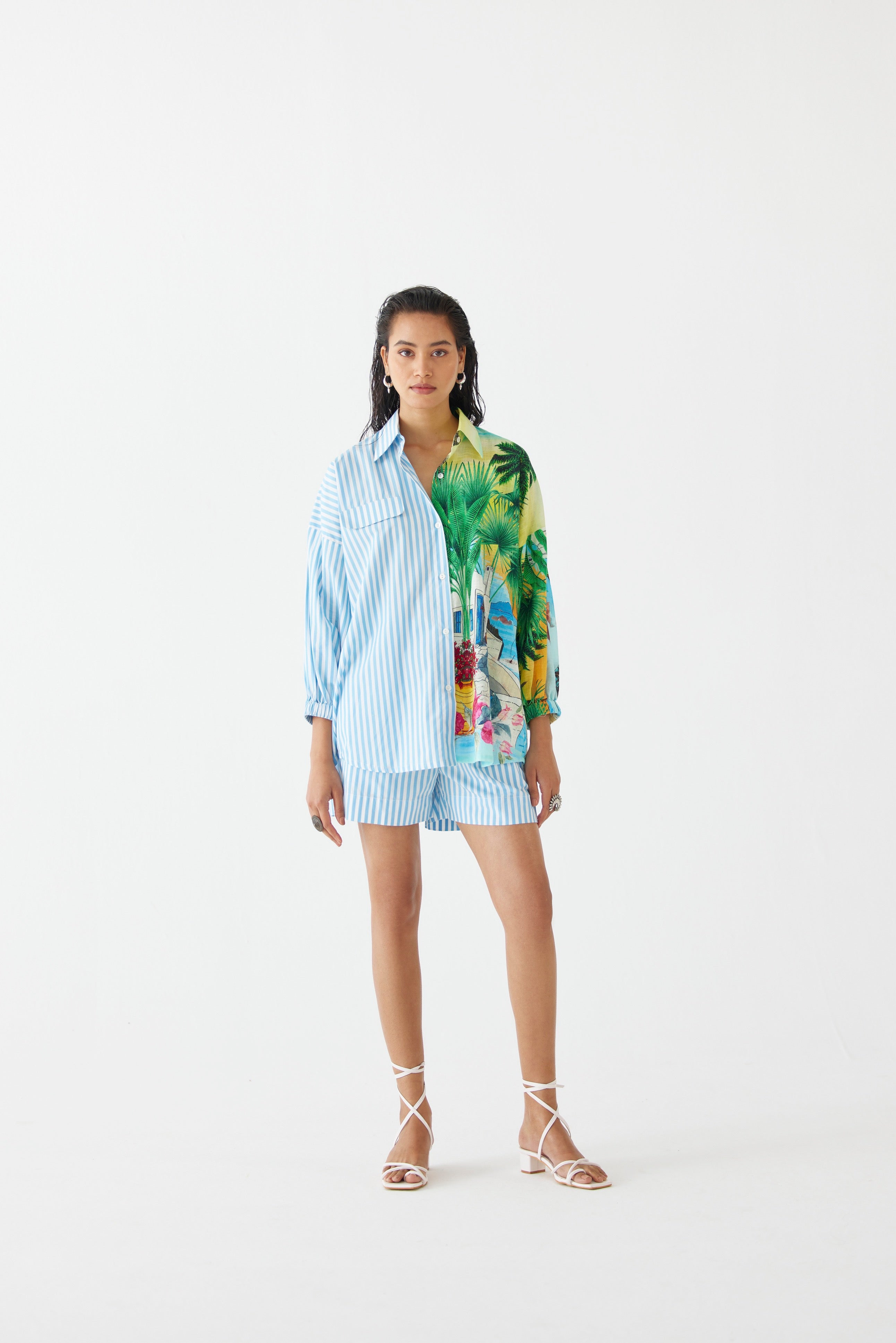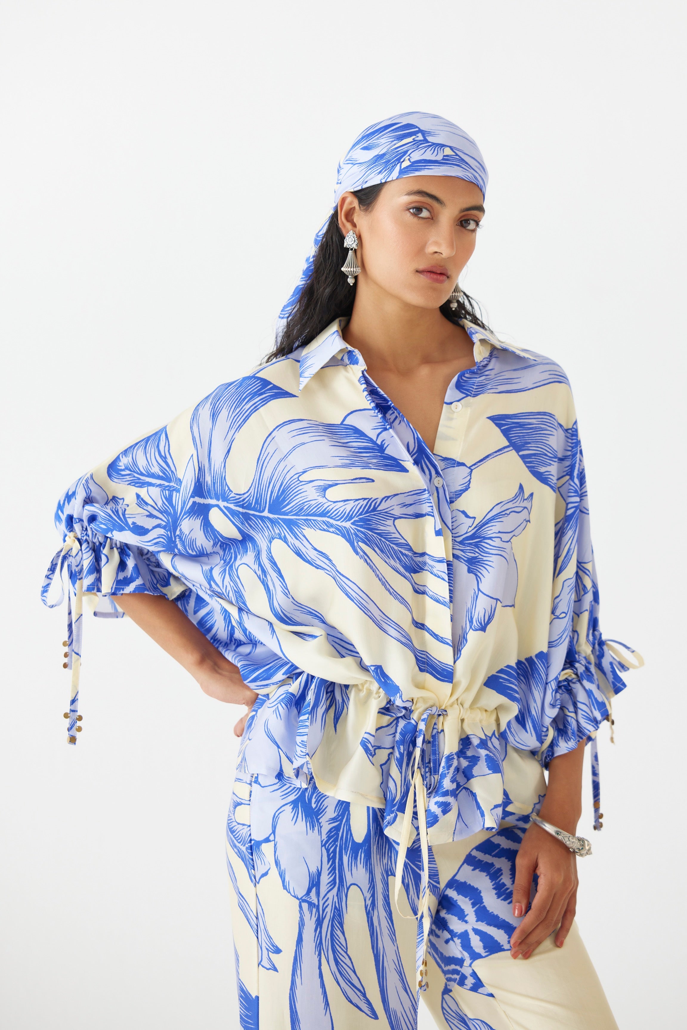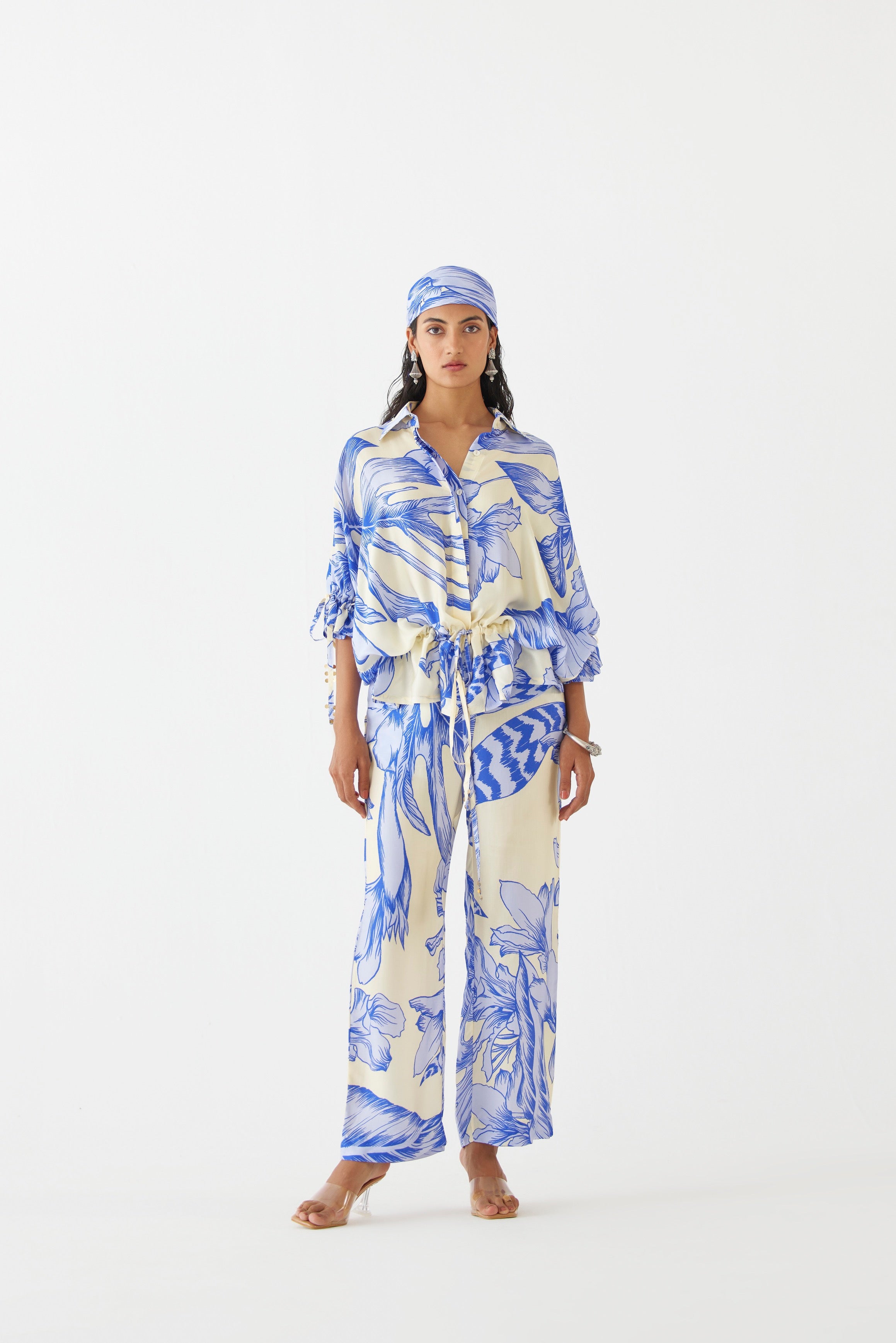 BLUE APHRODITE DRAWSTRING SHIRT & TROUSER CO-ORD