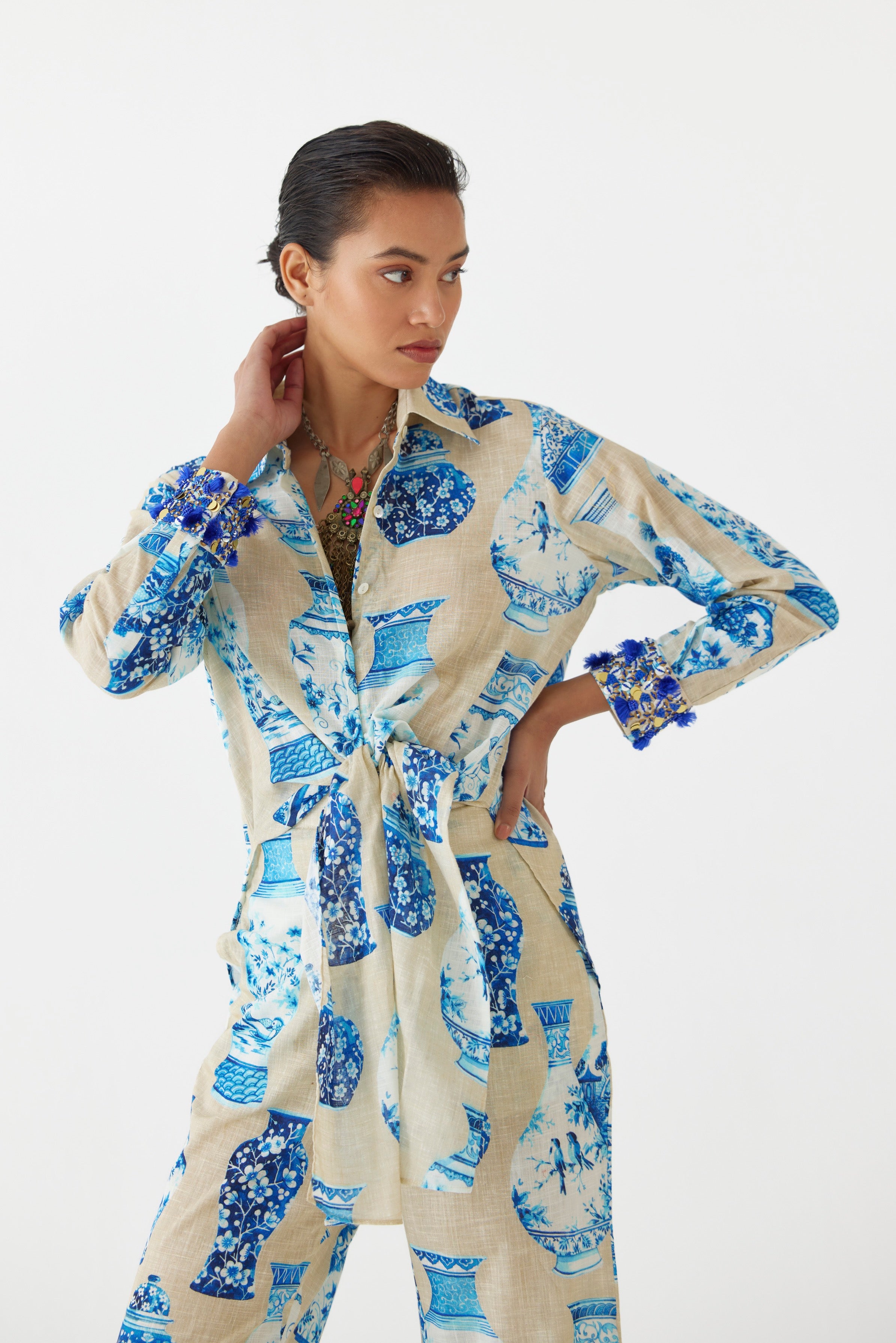 Leheriya Blue Shirt And Straight Trousers Co-Ord