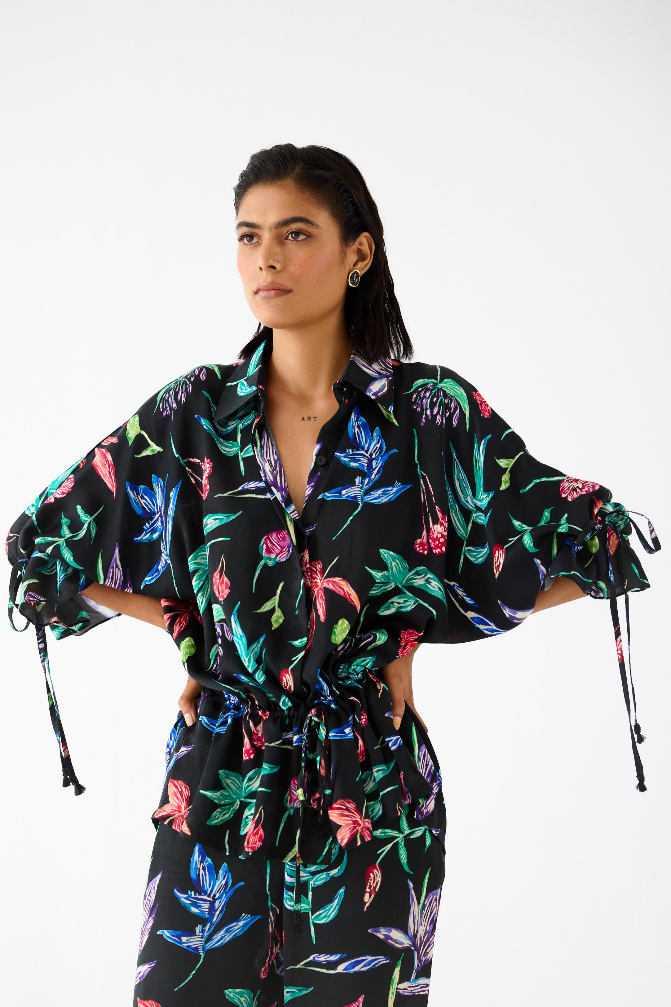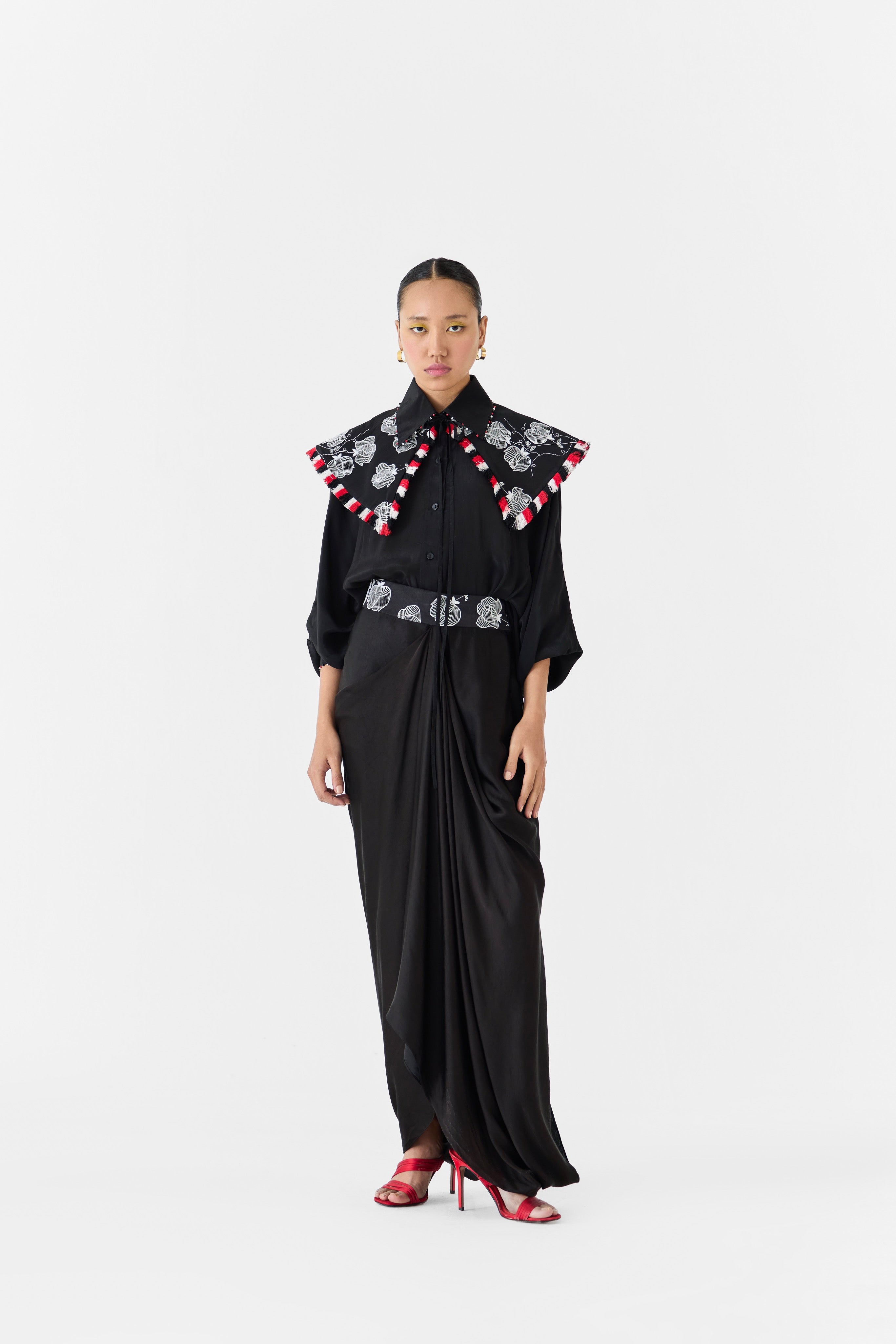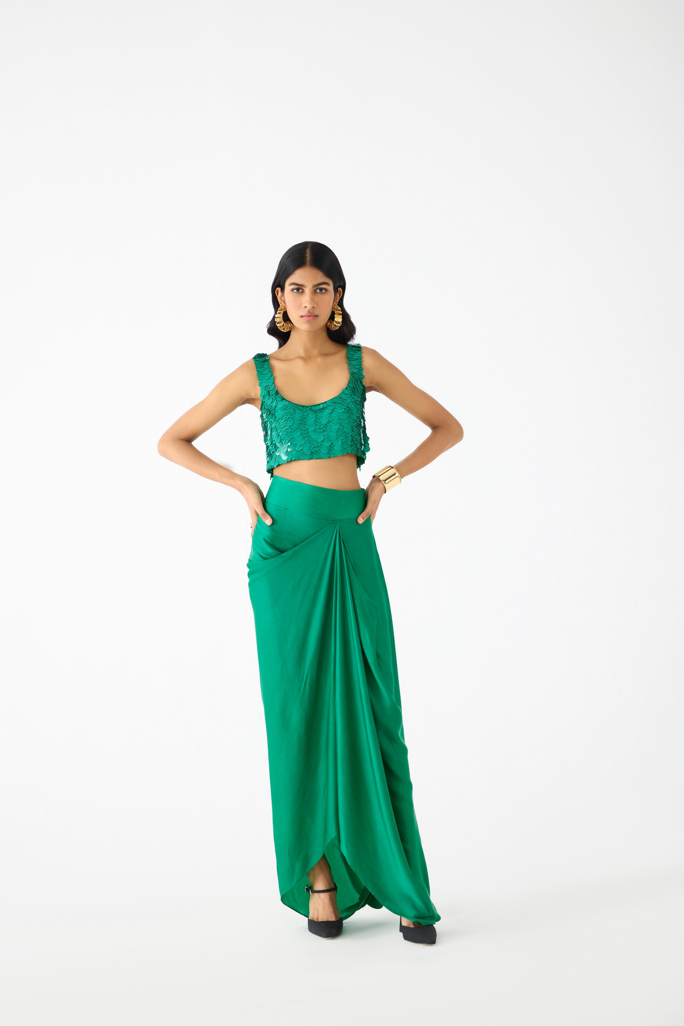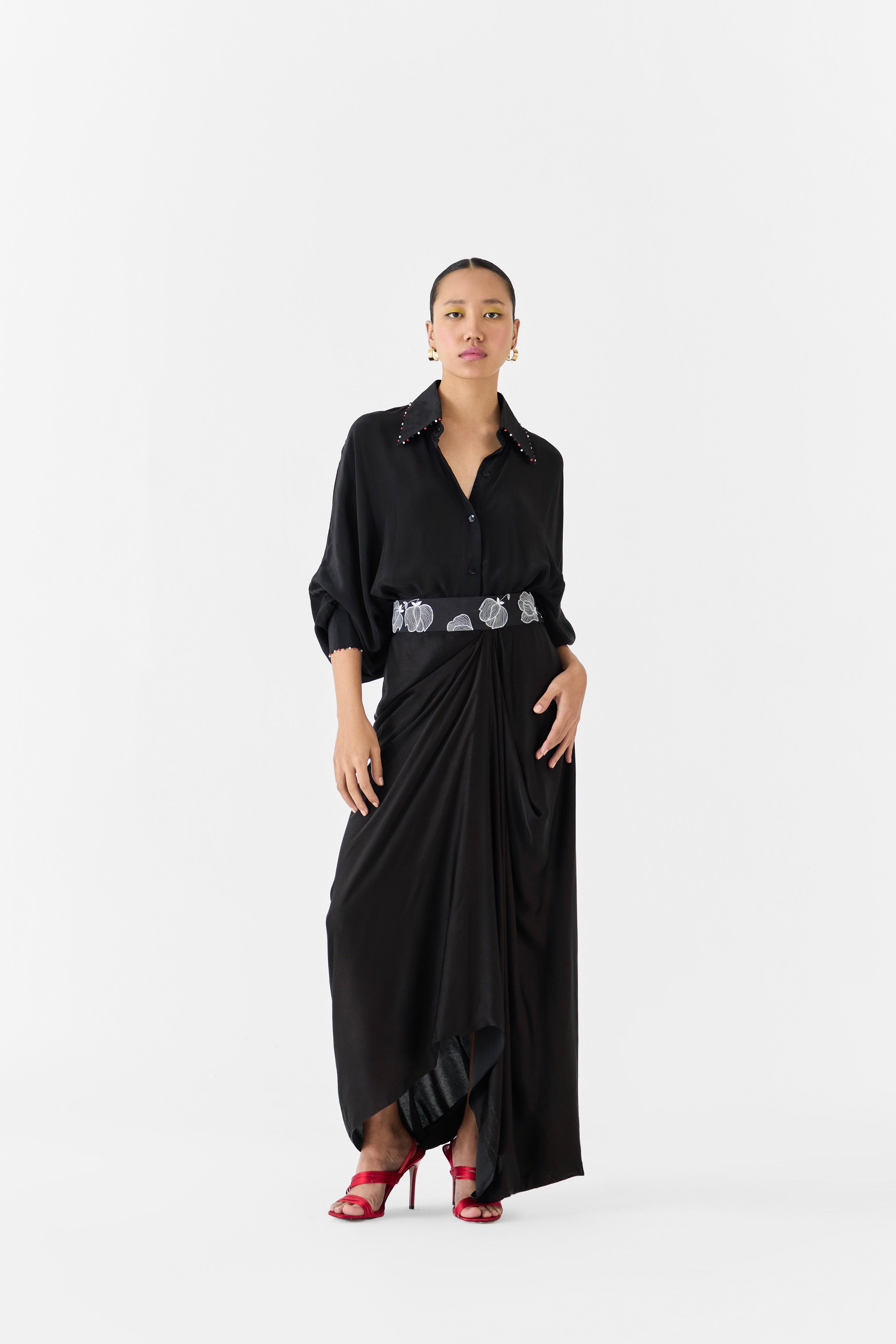BLACK PINEAPPLE DRAPED TOP & KNOT SKIRT