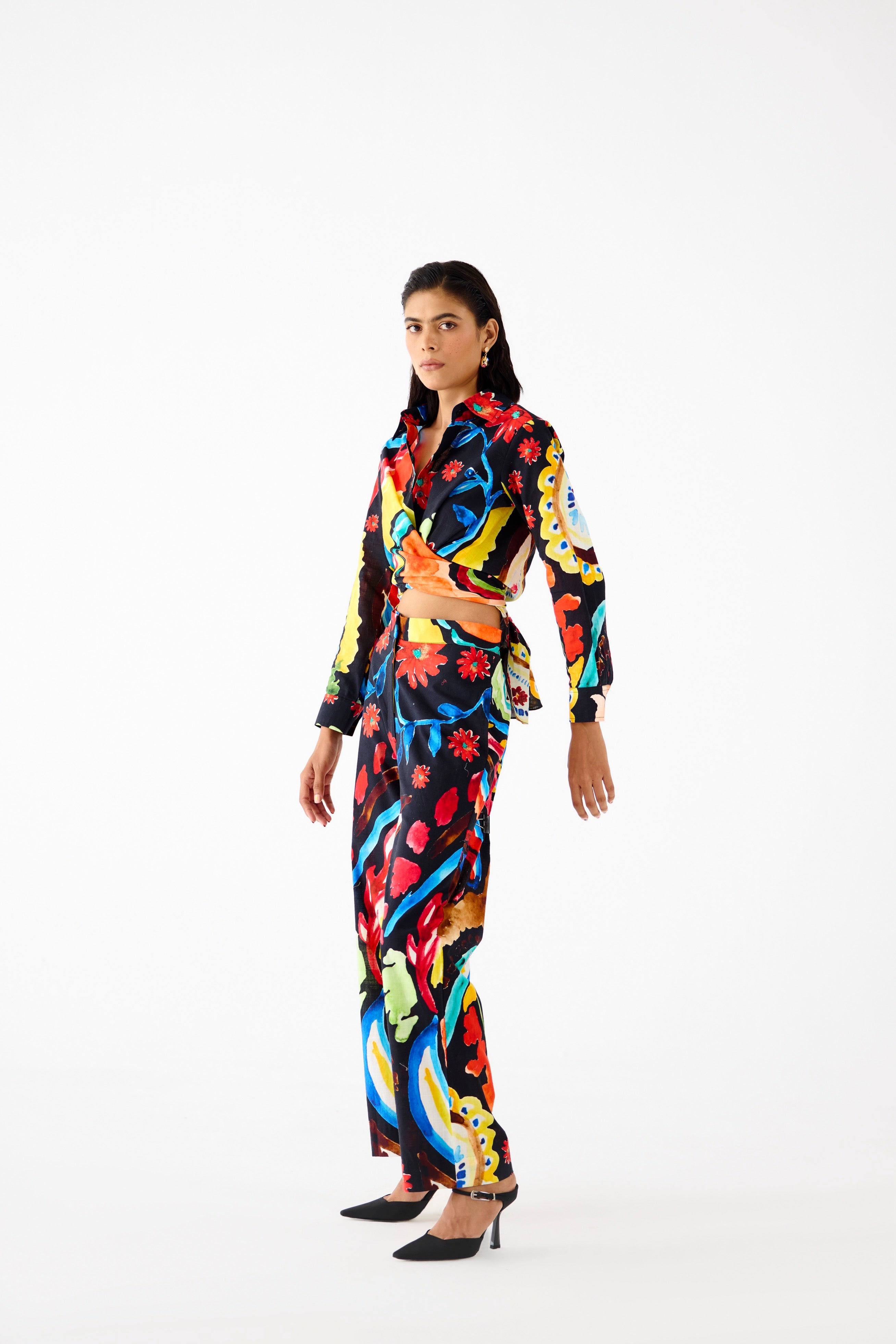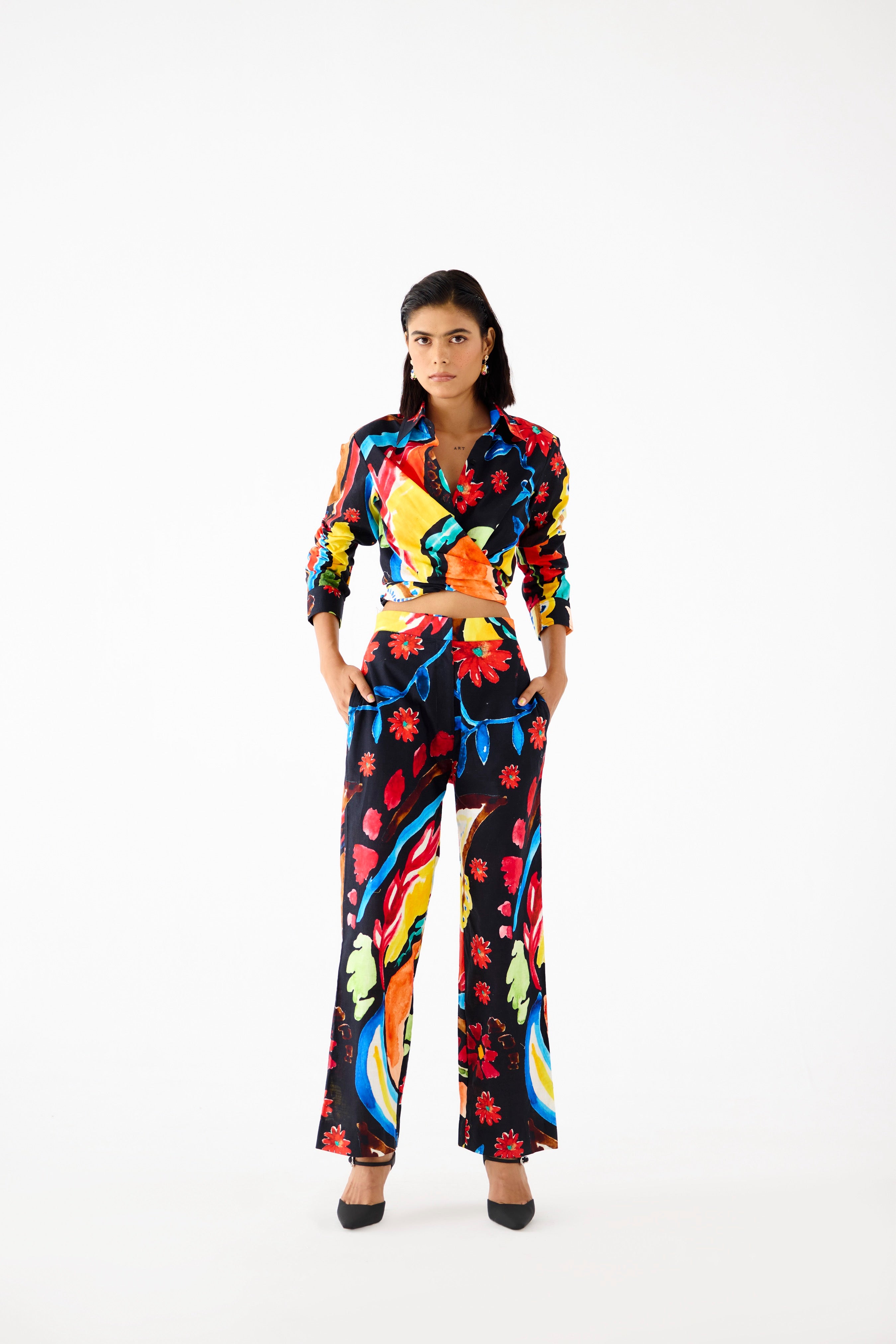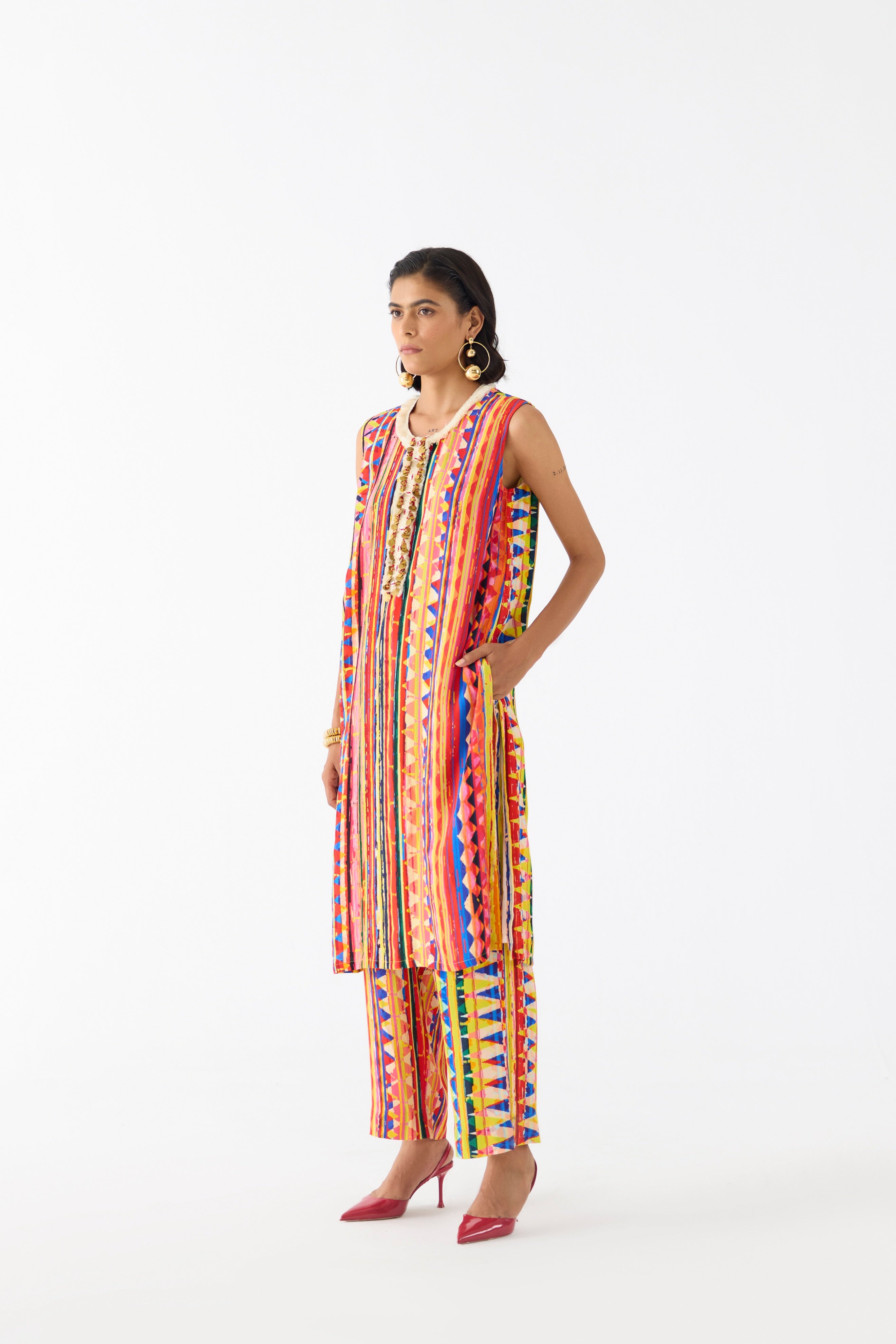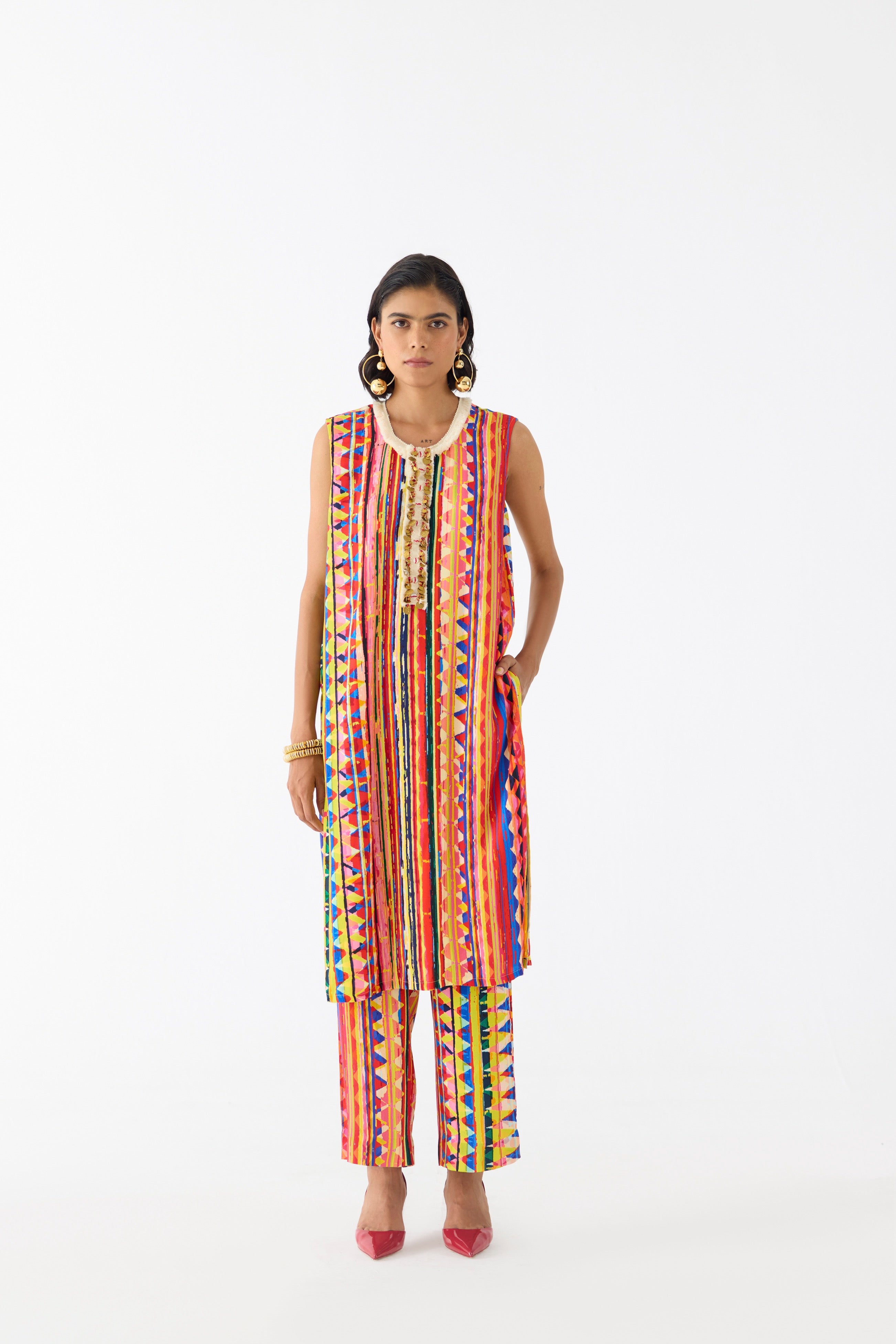 BRUSHSTROKE STRAPPY KURTA & FLARED TROUSERS CO-ORD