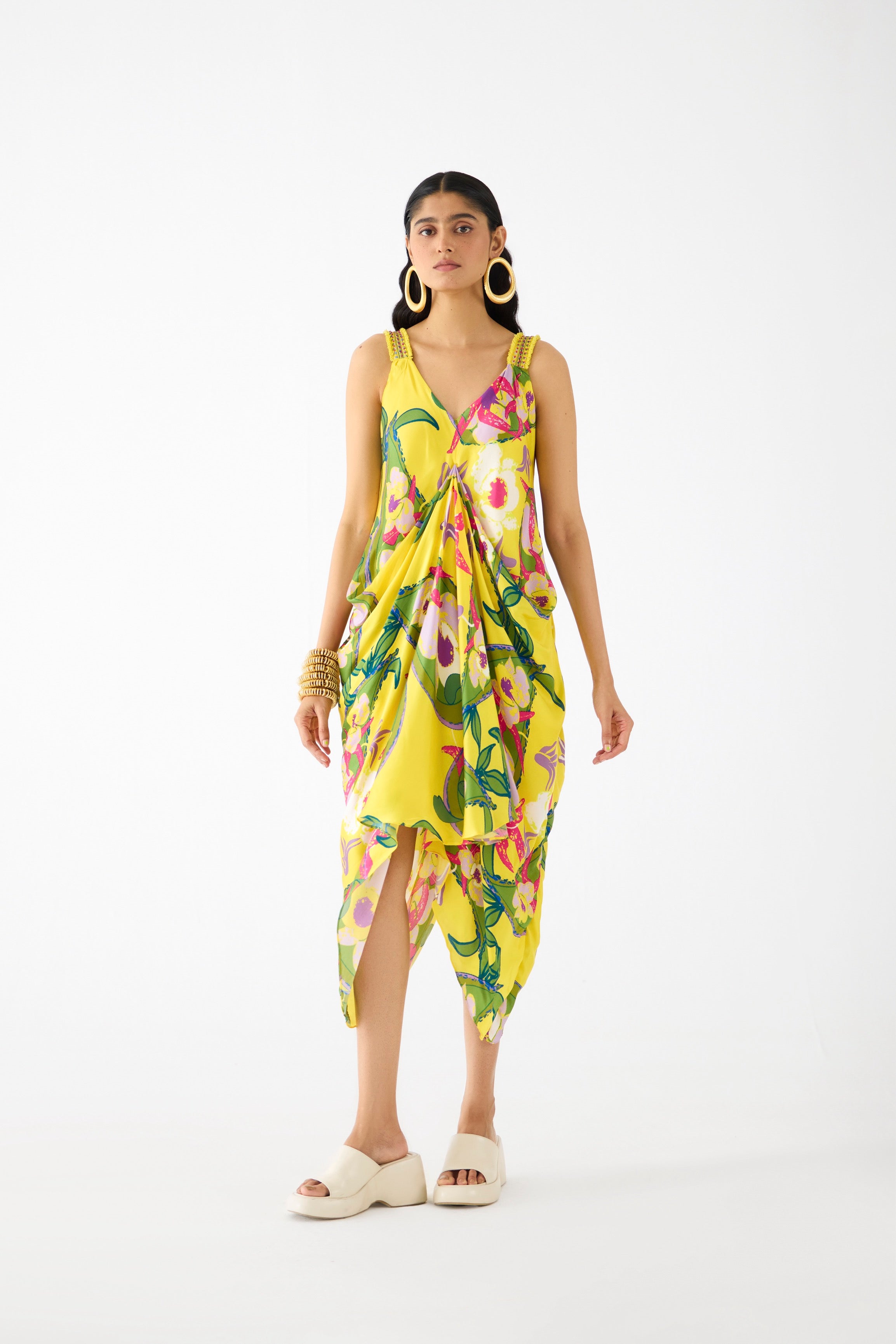 YELLOW PINEAPPLE ONE SHOULDER DRESS