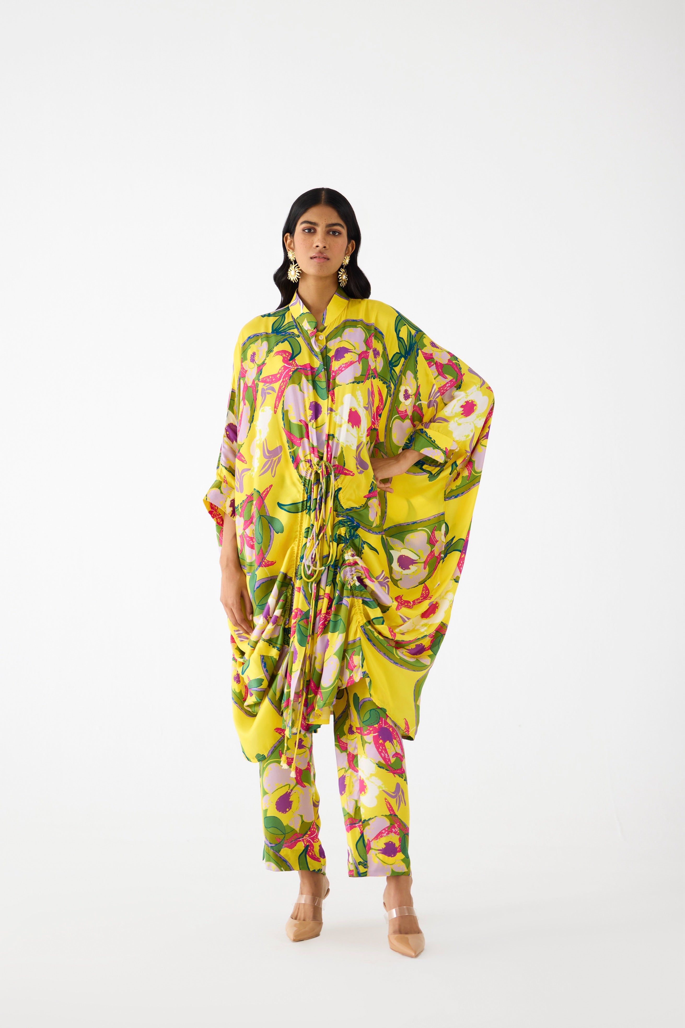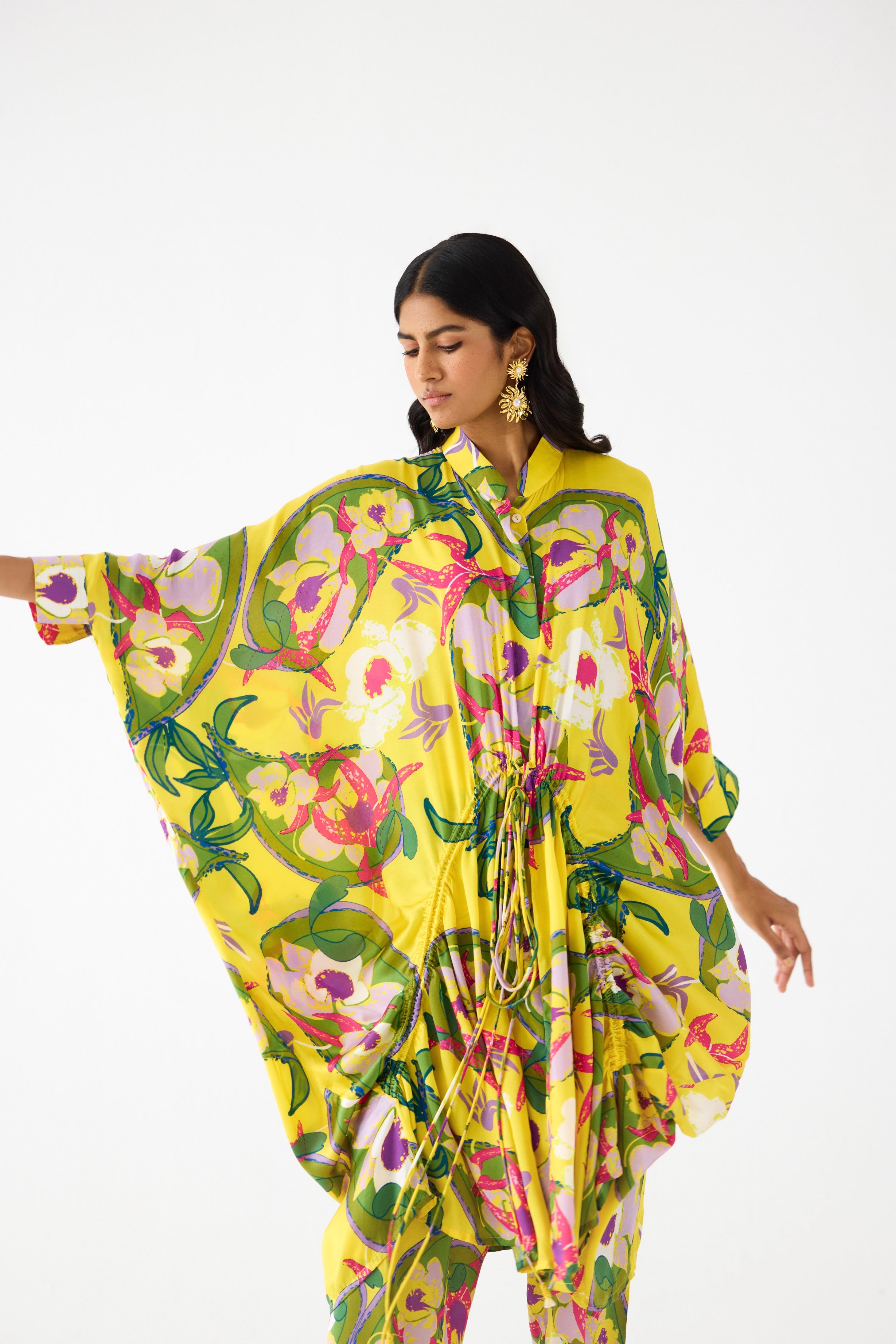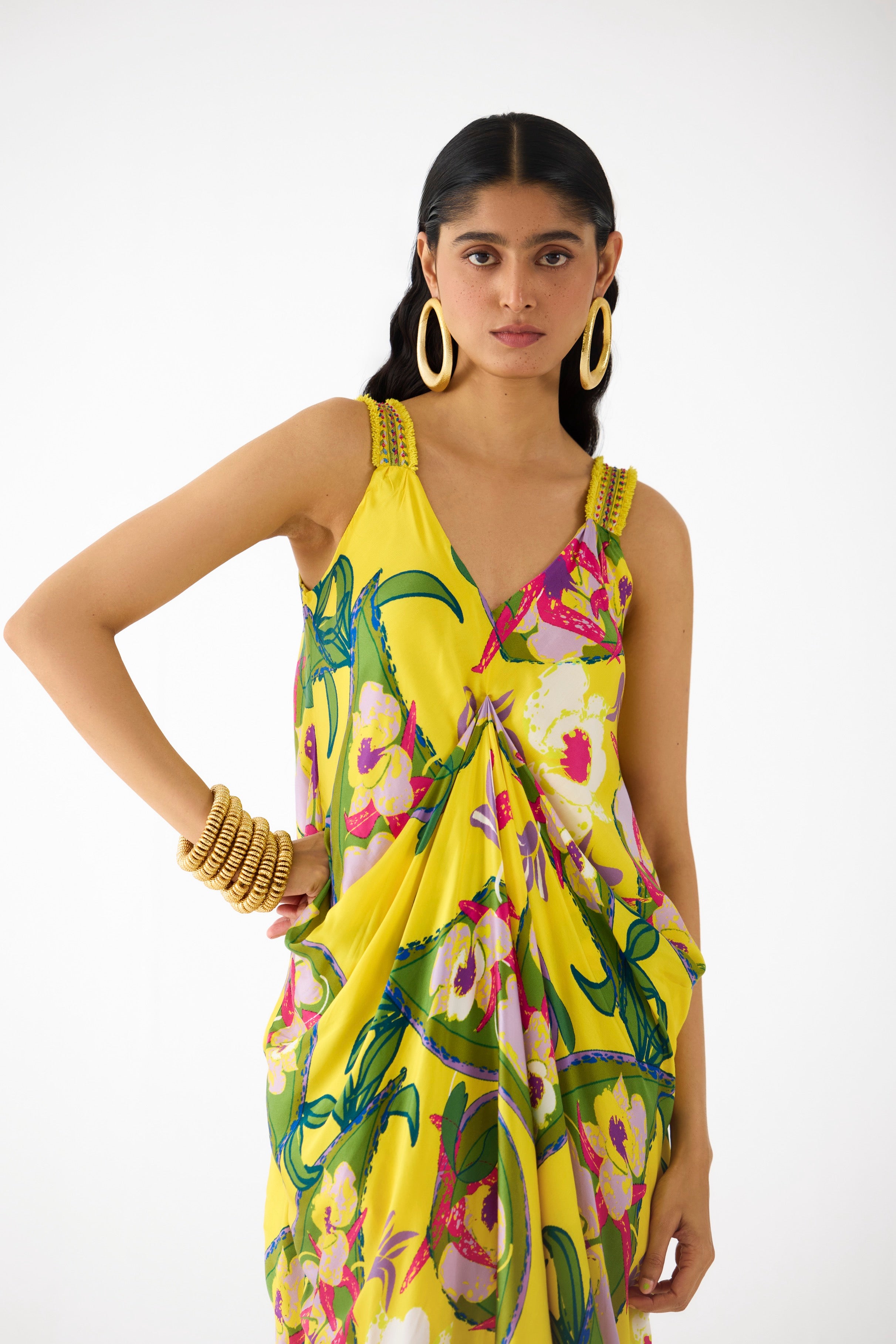 YELLOW PINEAPPLE STRAPPY JUMPSUIT WITH CAPE