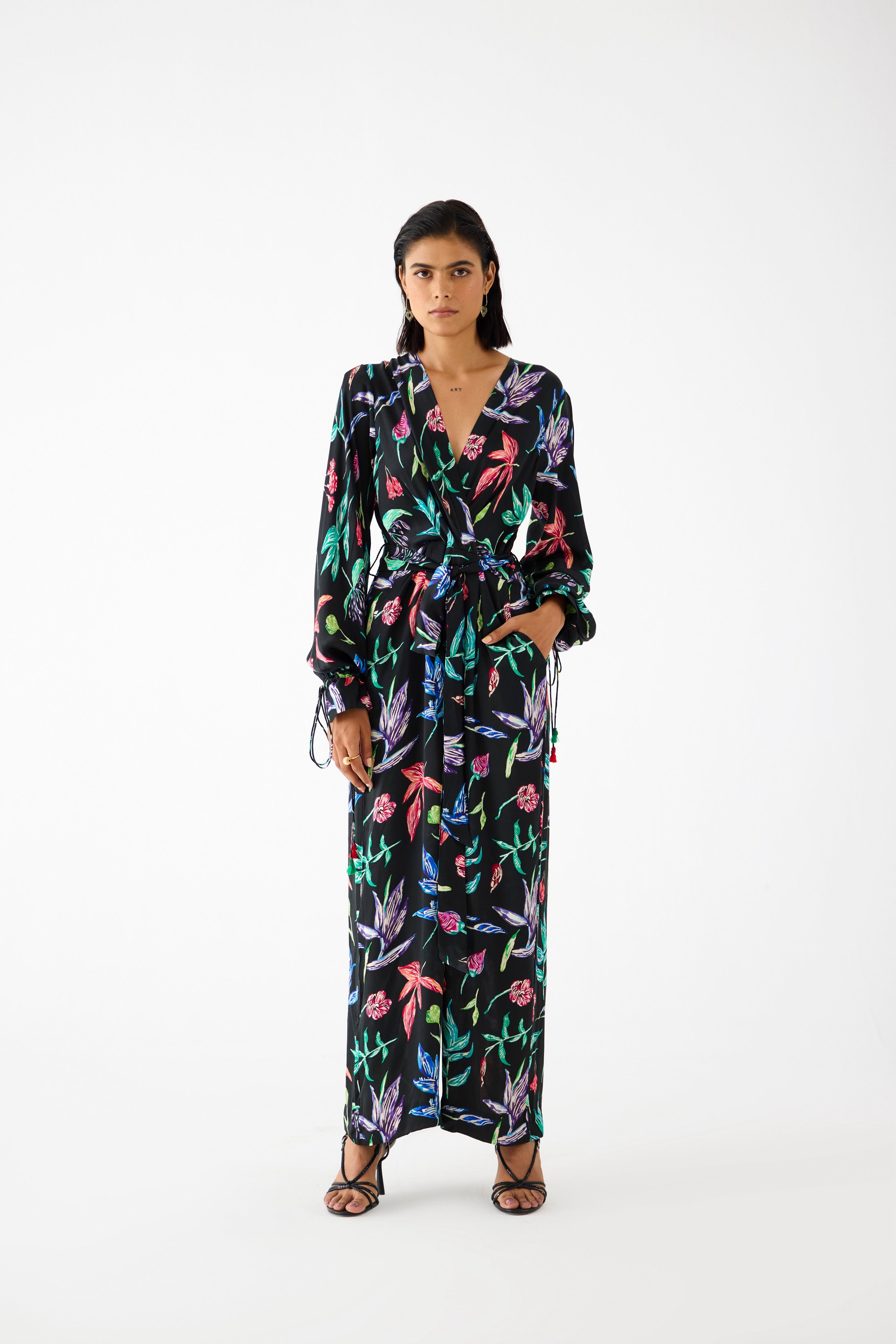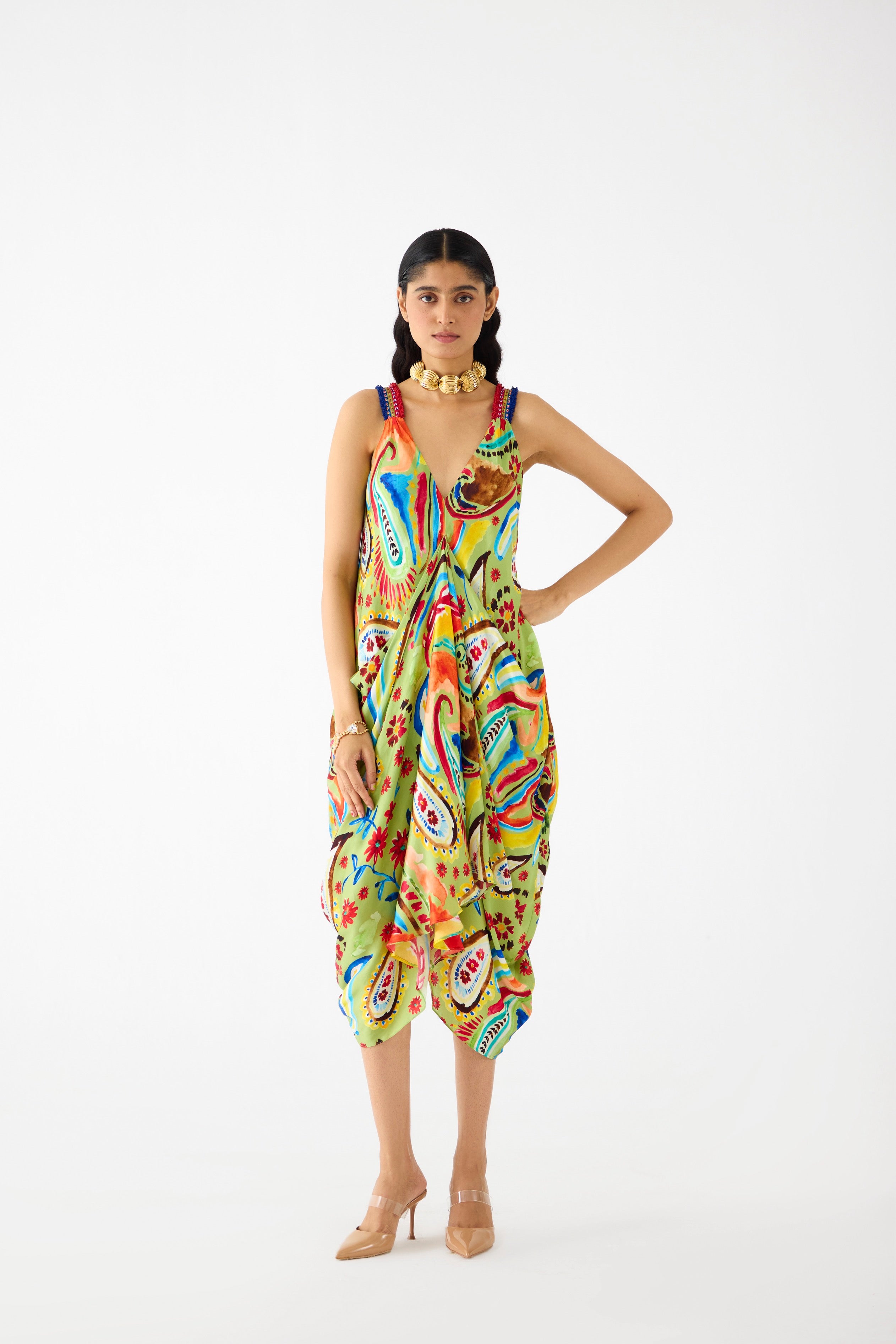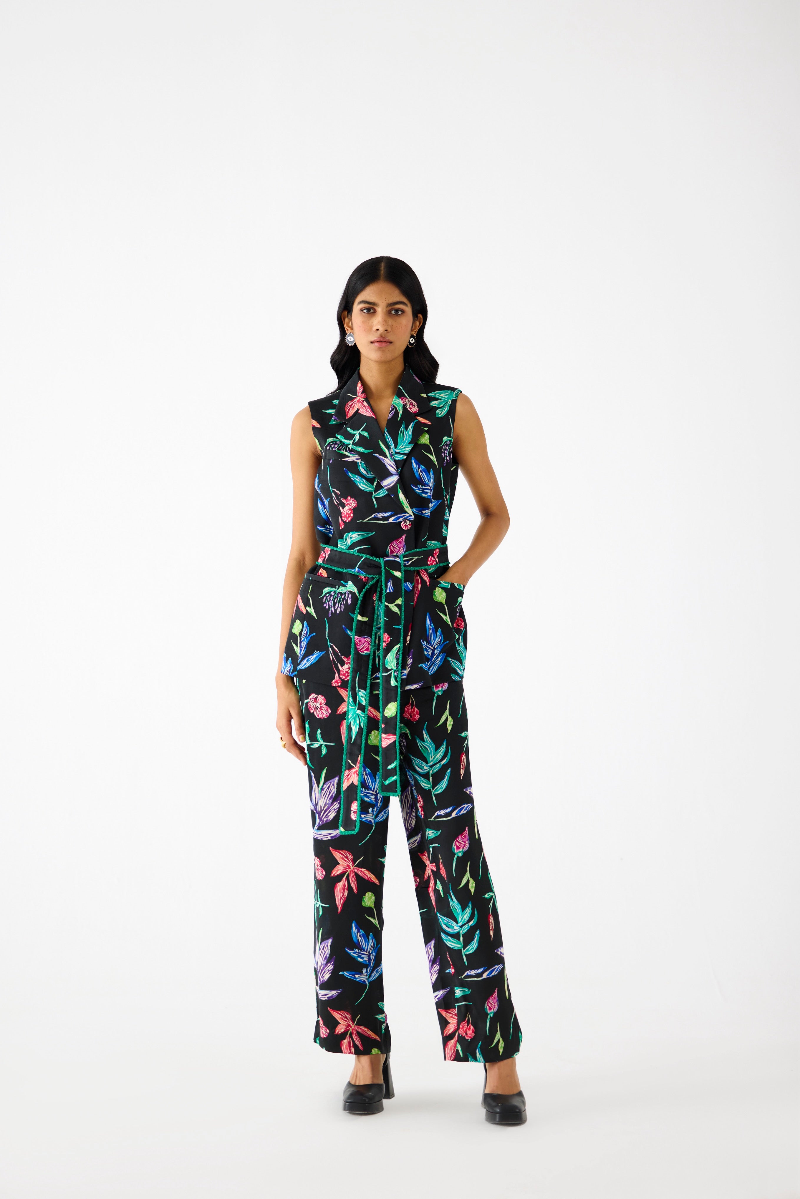 YELLOW PINEAPPLE STRAPPY JUMPSUIT WITH CAPE
