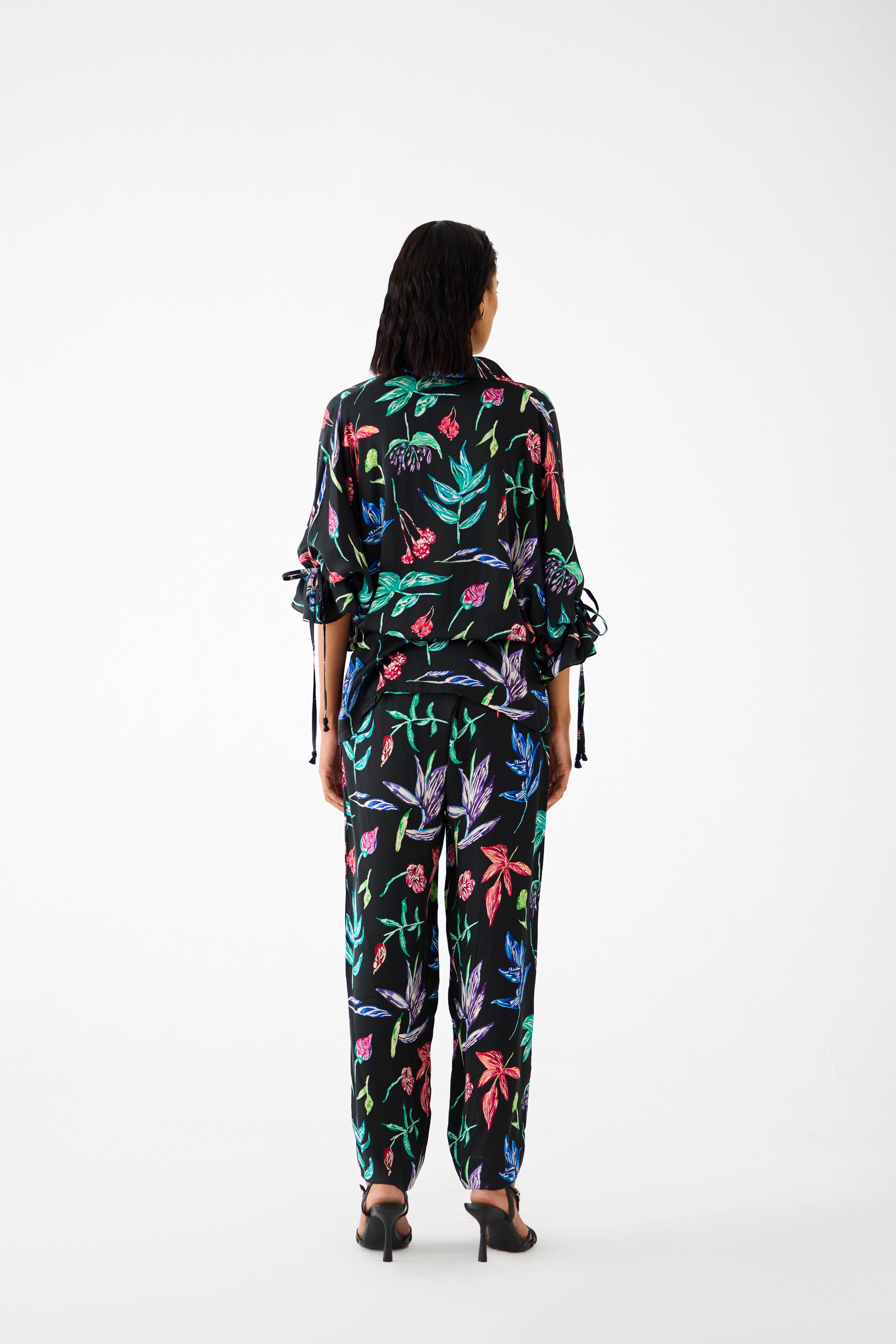 BLACK BOTANICA DRAWSTRING SHIRT AND TROUSERS CO-ORD