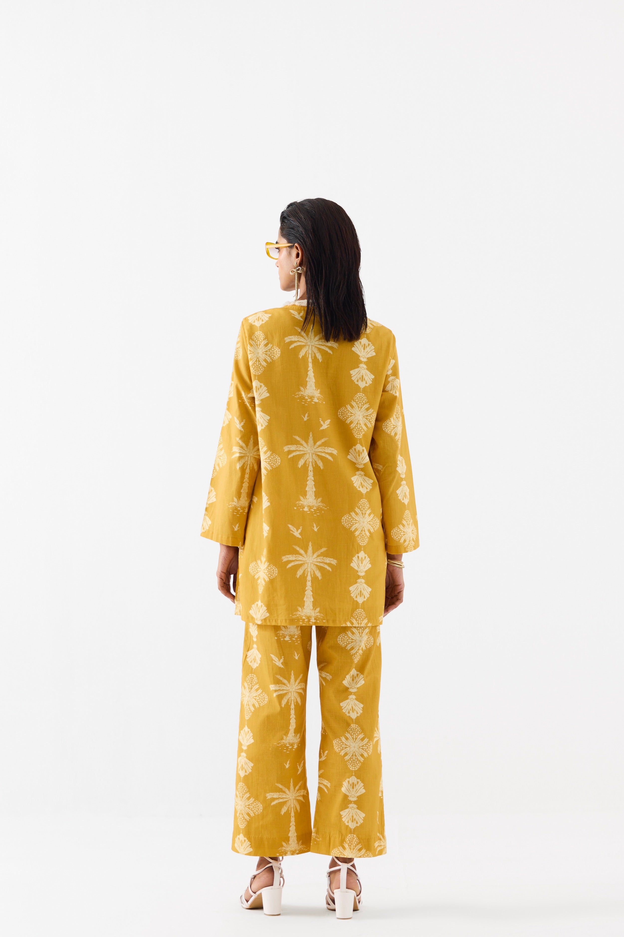 The Cabana Short Kurta and Pants crafted from our 100% cotton fabrication, trans-seasonal, is a statement piece. The kurta, made in our cabana palm print, is part of a 2 piece set. With a hand embroidered neckline, this kurta is lined and has full sleeves. Featuring a summery look, it has high slits. Paired with our Cabana printed straight pants with a side zipper, it looks chic. Wear it with heels for an elegant look.