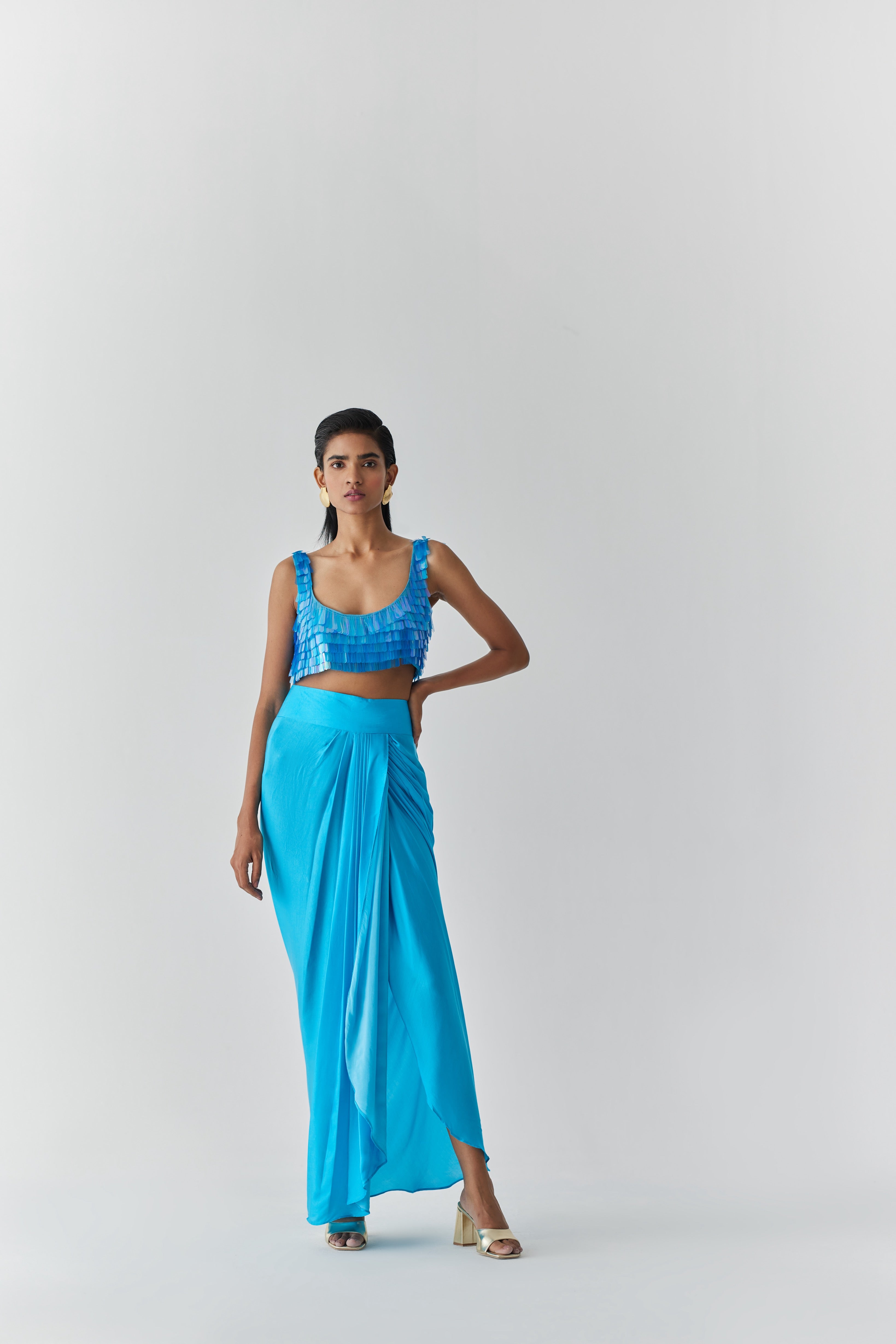 MACAW SEQUIN BLOUSE & DRAPE SKIRT