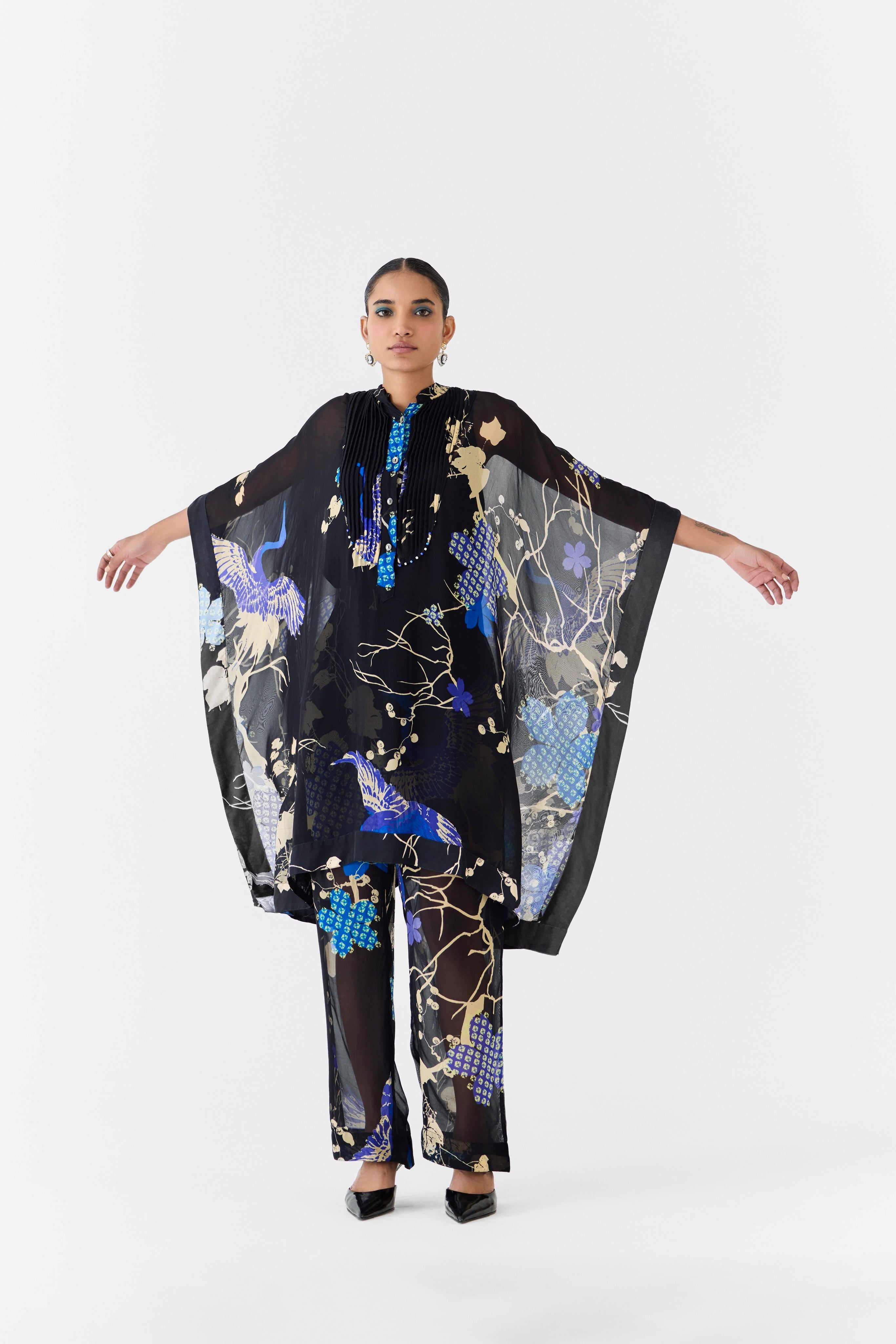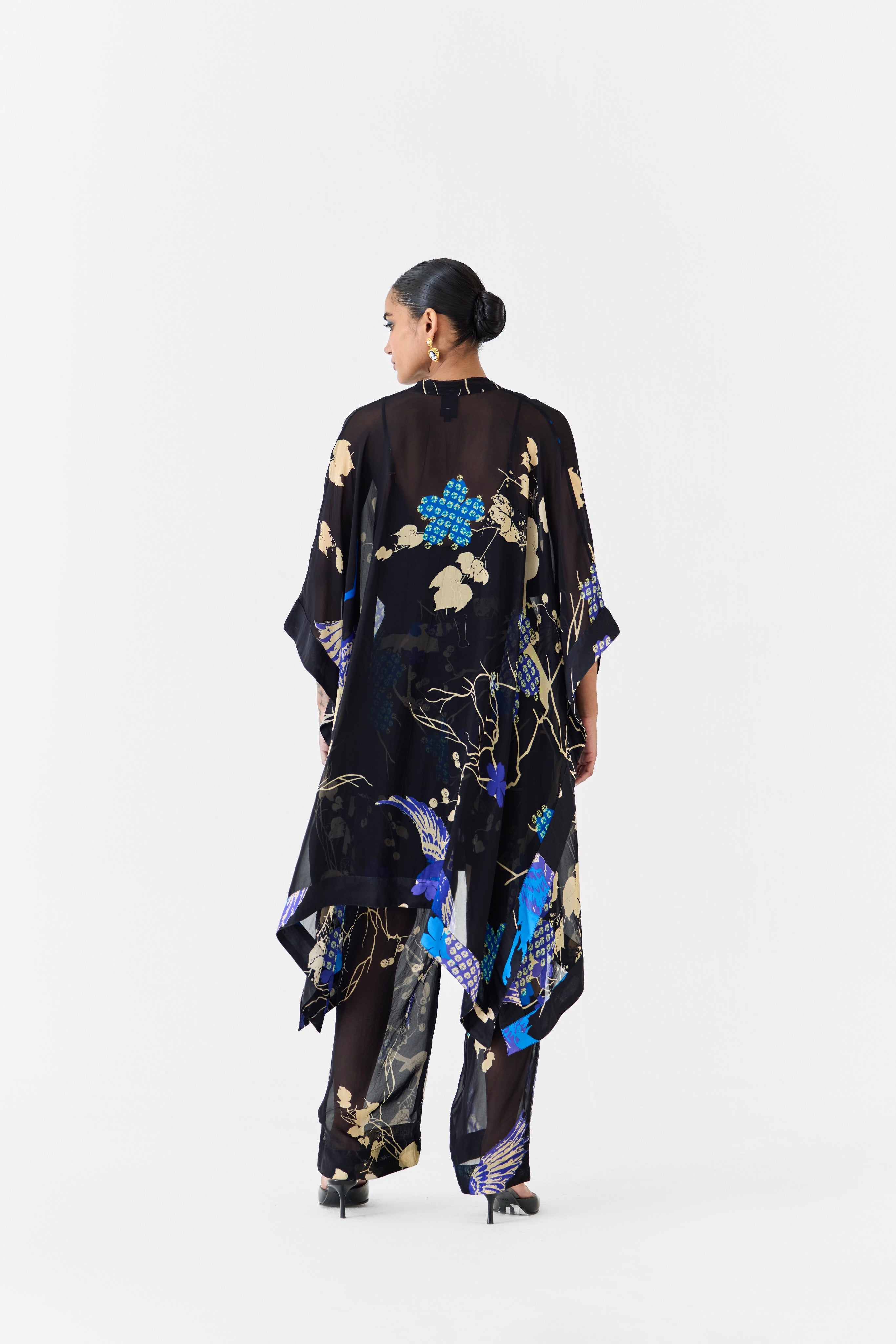 BLACK CRANE ORGANZA KIMONO & PANTS CO-ORD