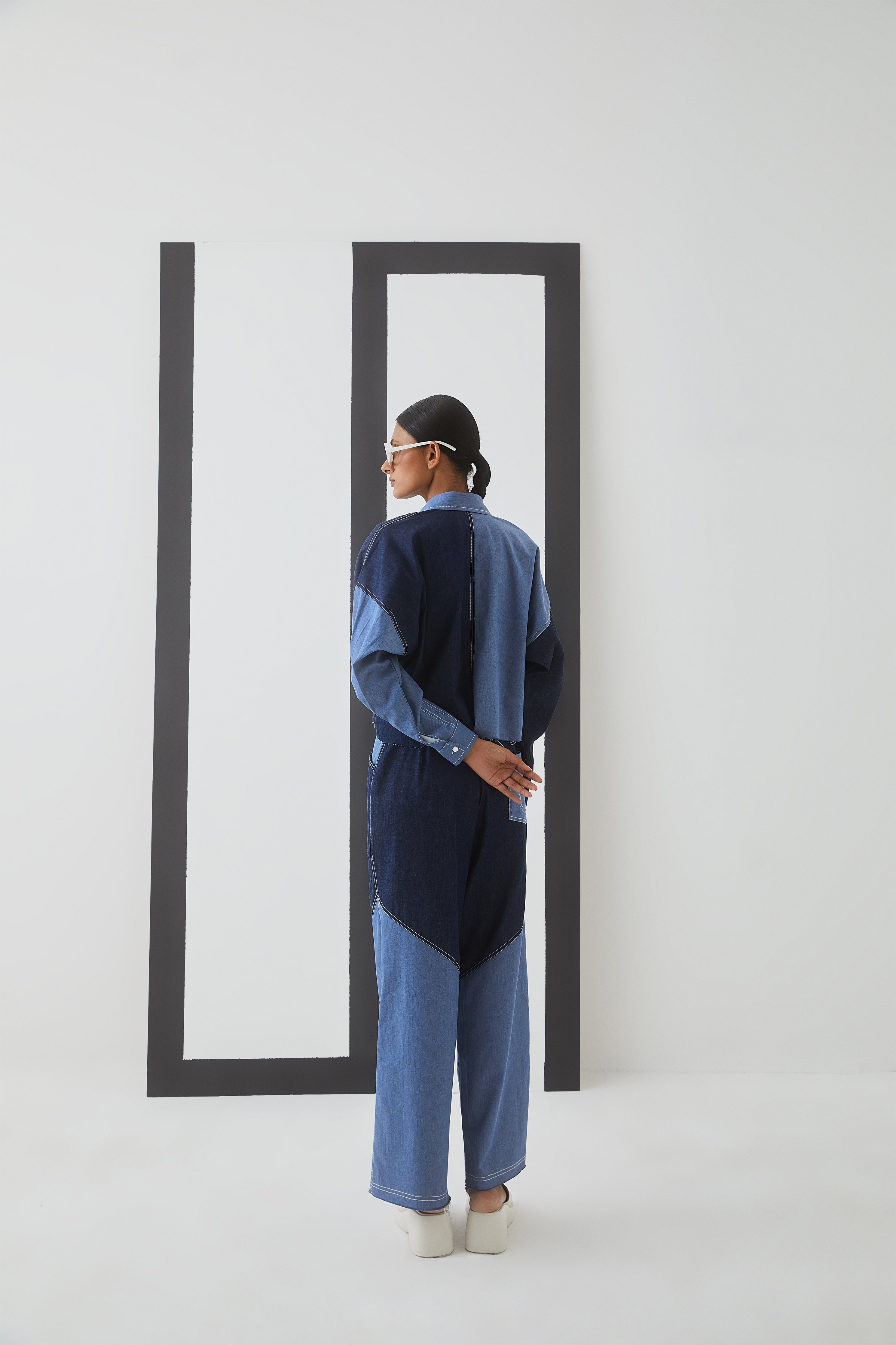 The Minerva Denim Knot Shirt crafted from our stunning denim fabrication, trans-seasonal, is a statement piece. Made in two contrasting tones of denim, this is a trend setting piece. Featuring a boxy shirt with front opening and knots, with double shade of denim this piece is versatile and can be styled in different ways. With a casual fit and matching trousers, it can be Paired with heels for a festive look.